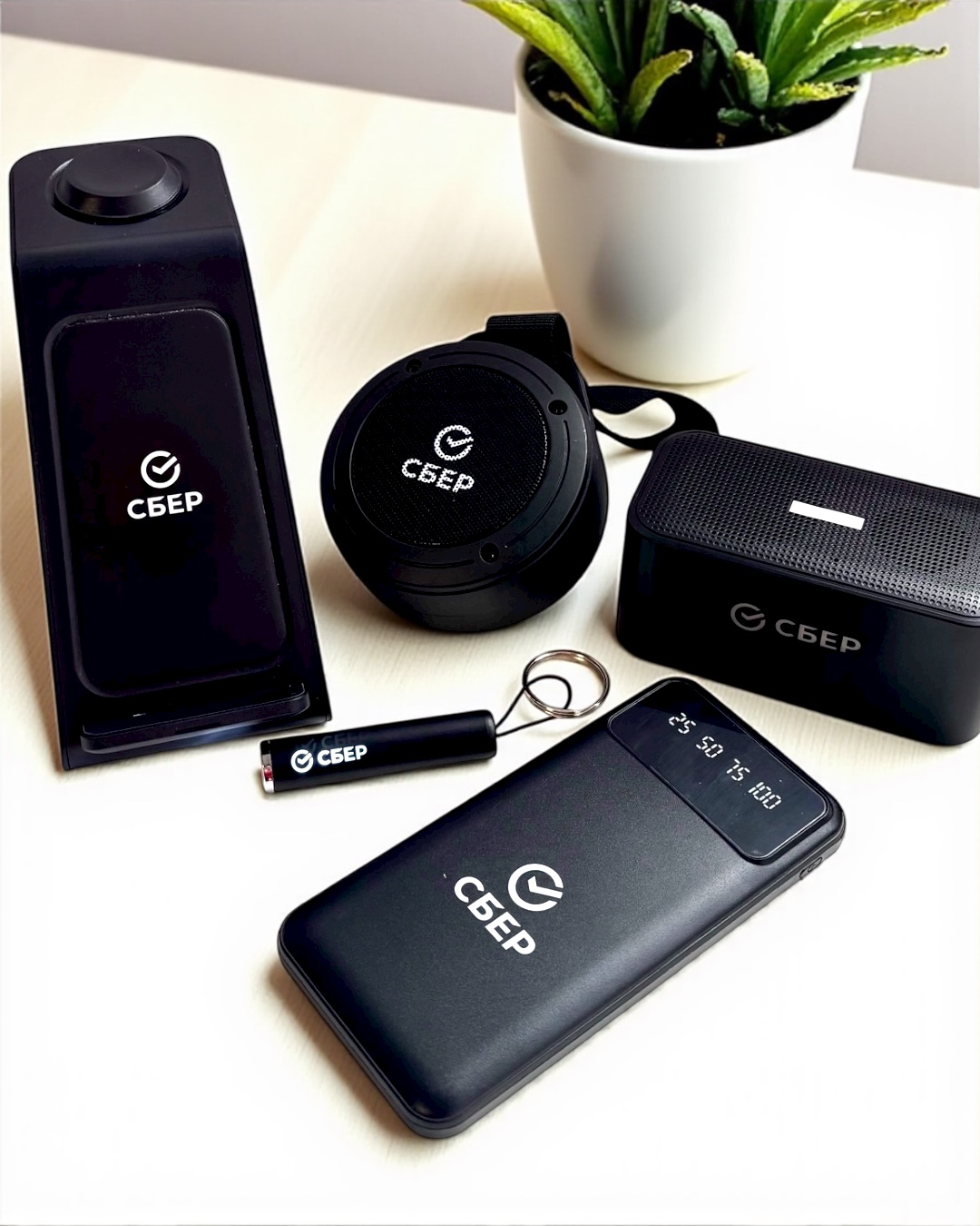 Для Сбера мы создали линейку современной сувенирной продукции с логотипом. Среди решений: