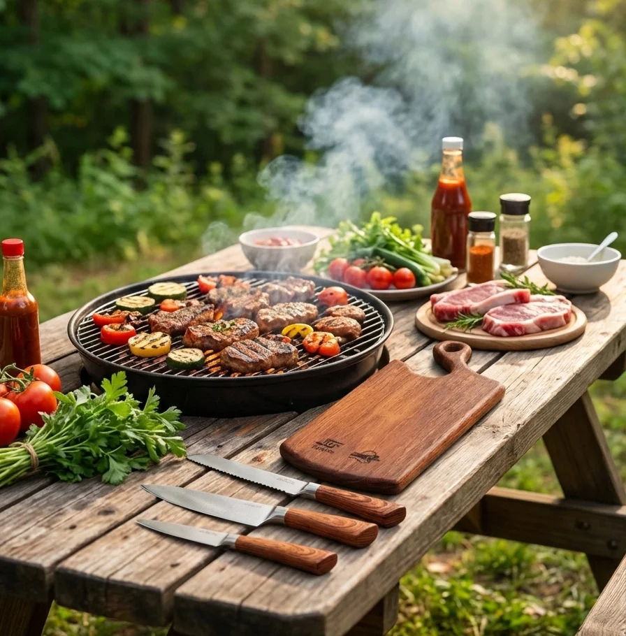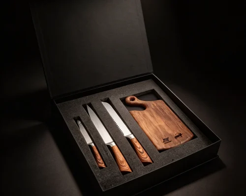 разработать премиальный комплект из ножей и разделочной доски, который удобно брать с собой в походы, на пикник или барбекю. При этом набор должен выглядеть статусно и подходить как подарок партнерам по бизнесу и подарок для вип-клиентов. Так появилась концепция набора для сезона шашлыков – практичного и эмоционального.