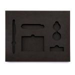 Ложемент, выполненный из черного ЭВА материала, представляет собой многослойную конструкцию, состоящую из двух слоев: нижнего толщиной 5 мм и верхнего — 10 мм. Согласно утвержденному макету, проемы для размещения предметов могут быть расположены как в одном, так и в обоих слоях.