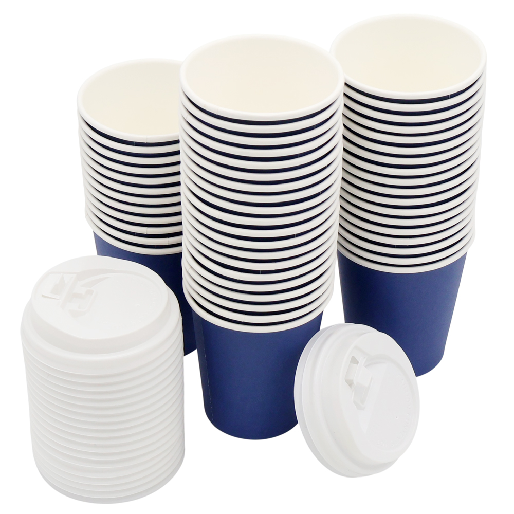 Набор бумажных стаканов с крышкой 8 унций (240 мл), 50 шт