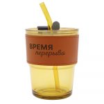 7. Стакан стеклянный с трубочкой и капхолдером Karamel, золотой (артикул 56003.11) — 1 шт.