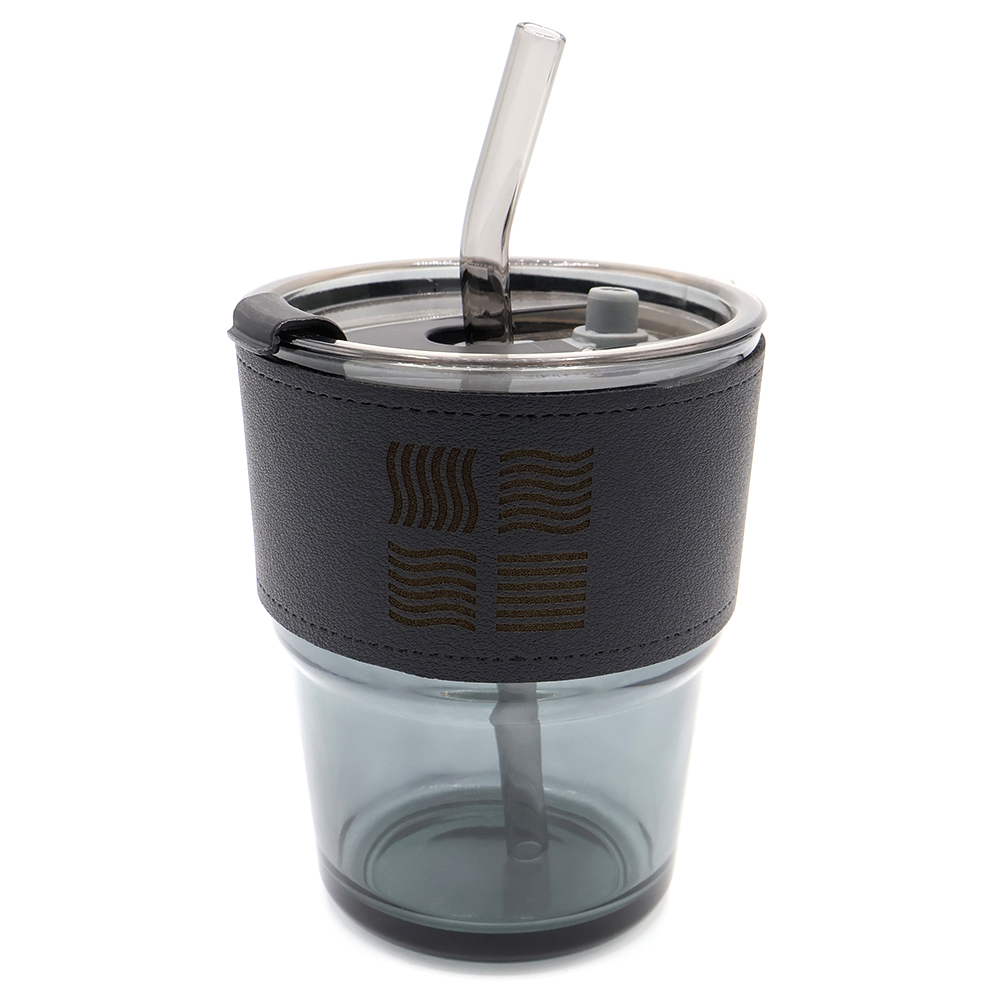 3. Стакан стеклянный с трубочкой и капхолдером Karamel чёрный (артикул 56003.02) — 1 шт.