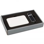Подарочный набор в стильной цветной картонной коробке серого цвета с конструкцией крышка-дно. Внутри на аккуратном ложементе расположены внешний аккумулятор емкостью 5 000 mAh и элегантная флешка объемом 16 ГБ в корпусе с вставками из искусственной кожи. Мощный аккумулятор обеспечивает быстрое и надежное питание мобильных устройств, а флешка в изысканном дизайне сочетает вместительность с темой премиального стиля, надежно сохраняя ваши цифровые файлы. Такой набор станет стильным и практичным подарком для деловых и активных людей, ценящих качество и эстетичность.