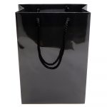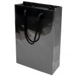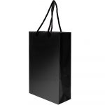 Бумажный пакет плотностью 170 г/м² с глянцевой ламинацией. Шнур 6 мм черного цвета. Люверс — черный.