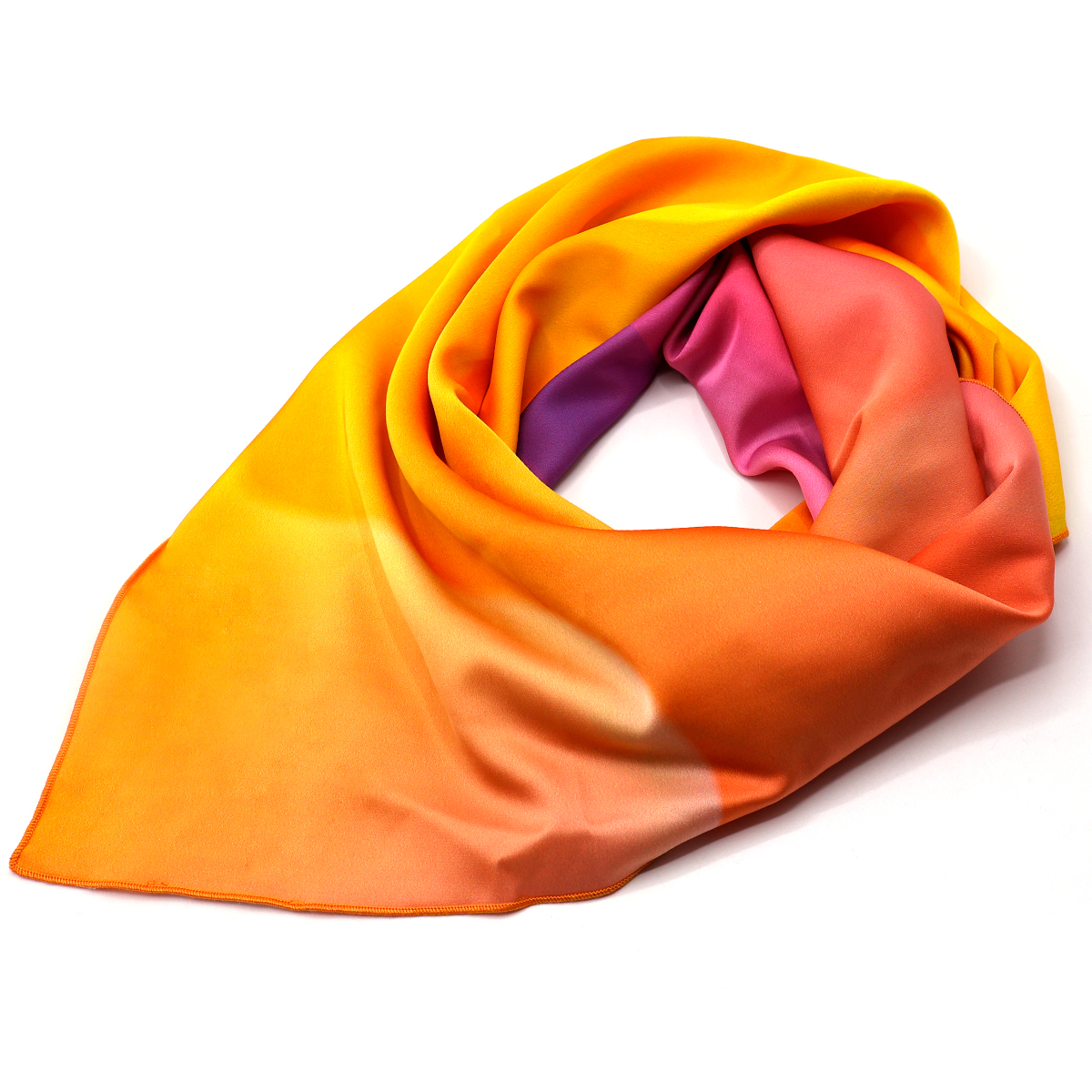 Платок односторонний Вист Полноцветная печать по всей поверхности от шва до шва с одной стороны. Возможны любые оттенки по CMYK: логотипы, надписи и разнообразные принты. Прохождение красок на изнаночную сторону зависит от плотности и структуры материала (яркость от 30 до 80%). Края обработаны микрооверлоком (закруткой), ширина шва 2-3мм. Размер: 80*80 см.Материал на выбор: Шифон Стандарт 70гр. Шифон Шарм 55гр. Шелк Армани 85гр.