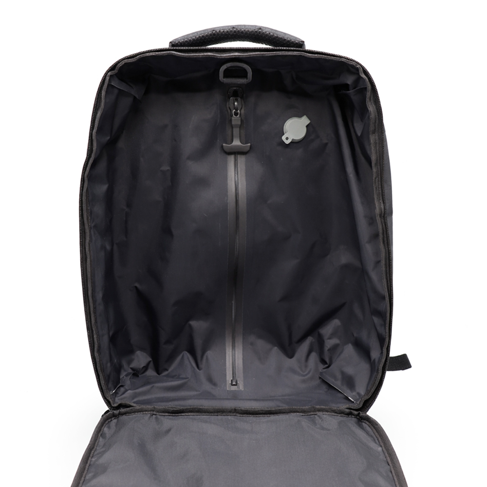 Его особенности: специальный вакуумный карман — и всё что вам нужно впутешествии в одном рюкзаке!!! Два оделения закрываются на молнии со скрытым звеном.В заднем отделении уплотнённый карман для ноутбука 15,6 дюймов с клапаном на велькро. В переднем отделении главная фишка этого рюкзака — вакуумный карман. Сложите в него вещи, плотно закройте молнию и с помощью механического насоса,идущего в комплекте, откачайте воздух и вуаля! Передняя стенка и большой карман на молнии со скрытым звеном из искусственной кожи с тактильно приятным soft-touch покрытием. 3D-сетка на задней стенке и подкладке плечевых ремней предотвращает скольжение и обеспечивает дополнительную вентиляцию и комфорт при контакте с кожей и одеждой. Дополнительная короткая ручка с подкладкой из 3D-сетки уплотнена для комфорта рук. Уплотнённые плечевые ремни регулируются по длине.Специальная накладка для чемодана на задней стенке делает этот рюкзак незаменимым спутником для путешествий.