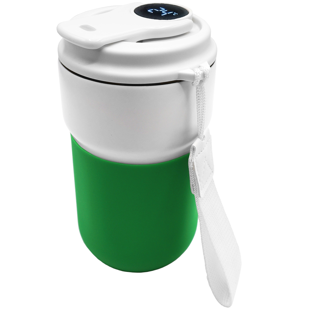 Термокружка вакуумная герметичная с дисплеем Clive To Go, белый/зелёный