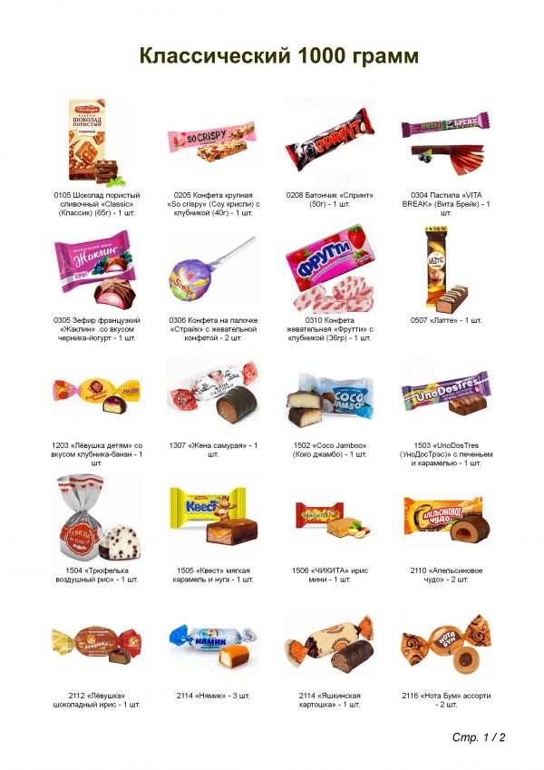 *Возможна замена кондитерских изделий на аналогичные по качеству и количеству!