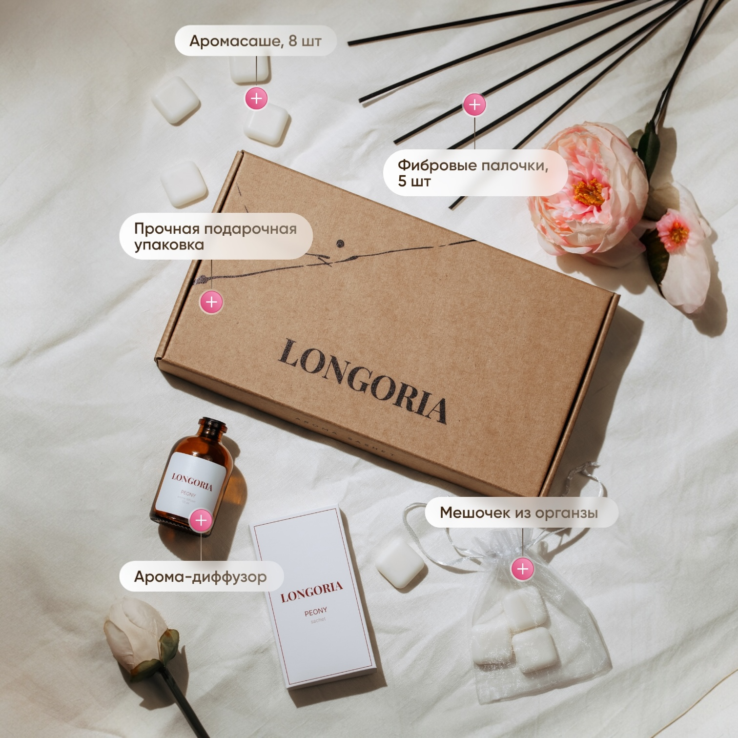 Ароматы на выбор: пион, хлопок, лаванда, мандарин, табак-ваниль