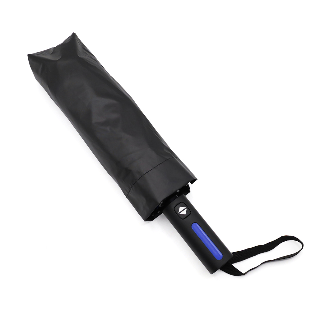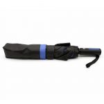 Автоматический противоштормовой складной зонт Sherp. Материал купола – эпонж. На таком материале вода превращается в капельки и скатывается, а сам зонт остается сухим. Цветной элемент на ручке – в тон купола. Ветрозащитная функция – спицы из стекловолокна, а специальное устройство препятствует поломке спиц при резких порывах ветра. Цвет по PANTONE® (максимально приближен): 3590C.