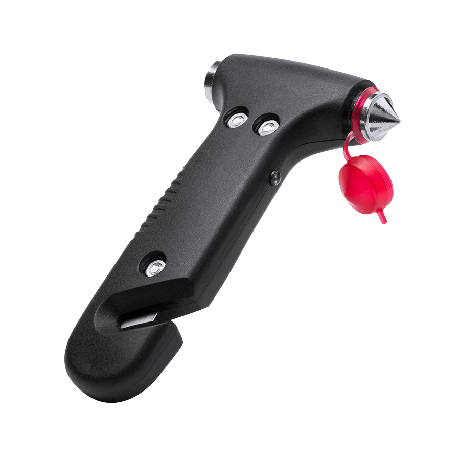 Автомобильный молоток с ножом для ремня безопасности и светодиодной подсветкой. 1 фонарик, 3 режима освещения. Батарейки входят в комплект.
