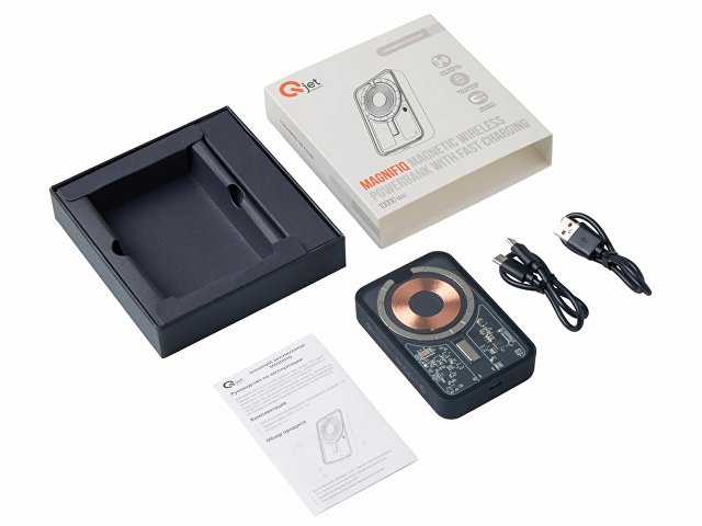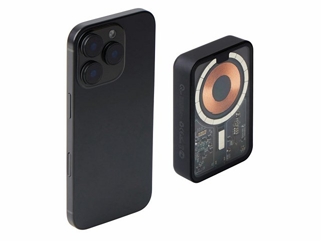 Беспроводной магнитный внешний аккумулятор MagnifIQ — технологичный и стильный power bank с эффектной прозрачной передней панелью, сквозь которую видны мощные магниты, индукционная катушка и электронная начинка. Ёмкость 10 000 мА·ч обеспечивает до 2–3 полных зарядов смартфона, а поддержка быстрой беспроводной зарядки до 15 Вт (с совместимостью QC/PD) делает процесс зарядки максимально быстрым и удобным. Двунаправленный USB-C порт позволяет как заряжать другие устройства, так и сам аккумулятор. Обе стороны корпуса подходят для нанесения логотипа: лицевая — через прозрачную панель, задняя — на приятное на ощупь soft-touch покрытие. Компактный, надёжный и сильный — идеальный технологичный продукт для продвижения и ежедневного использования. Поставляется в качественной упаковке с шубером, Двунаправленный кабель USB-C и кабель USB-A – USB-C в комплекте.