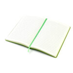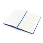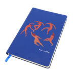 Блокнот формата А5 с мягкой обложкой из PU-материала, имеющего текстуру, имитирующую поверхность натуральной кожи; с текстильной закладкой в цвет блокнота, 256 страниц, плотность 70г/м, страницы с черными линиями. Цвет по PANTONE® (максимально приближен): 2096 С