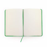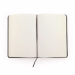 Блокнот формата А6 с жёсткой обложкой из кожзаменителя. Материал — полиуретан. Ляссе и эластичная застёжка в цвет обложки. Внутри 100 чистых листов кремового оттенка.