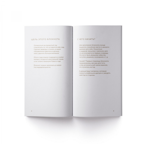 Блокнот традиционно покупают себе в конце уходящего года или в качестве новогоднего подарка. Хотя ограничений по заполнению нет. Итоги года можно подводить в любой момент, когда есть внутренний порыв, а не только накануне Нового года.