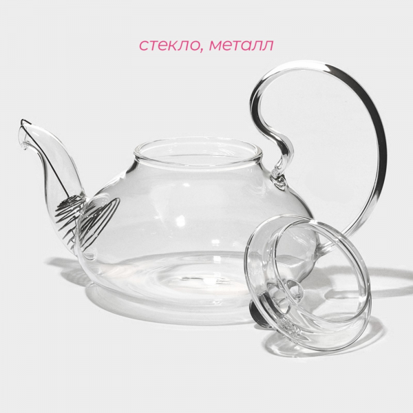 Заварочный чайник, 600 мл, 19×13×12.5 см, металлическое сито, стекло