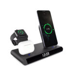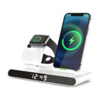 Часы электронные Abbatt мультифункциональные с беспроводной зарядкой. Особенность этих электронных часов заключается в том, что они выполянют функцию не только часов и будильника, а еще с их помощью можно заряжать свои гаджеты. Удобство беспроводной зарядки говорит само за себя — очень комфортно заряжать смартфон, часы и наушники, просто положив их на зарядную станцию, не подключая при этом к ним никаких кабелей. Также есть возможность быстрой зарядки Qi. При беспроводной зарядке устройство меньше подвержено перепадам в сети, чем при подключении к розетке, тем самым увеличивается срок службы аккумулятора. Благодаря интерфейсу Type-C (шнур идёт в комплекте 1м) ваши гаджеты будут заряжаться более эффективно, а главное — одновременно. Вы можете смотреть фильмы, слушать музыку, звонить или отправлять сообщения во время всего процесса зарядки. Входы: 9V/2A 12/2A. Выходы: Беспроводной 10W / 7.5W / 5W / USB 5V / 0.8-1A / Airpod 3W / Apple watch 2.5W. Совместимость с Apple 8 и выше.