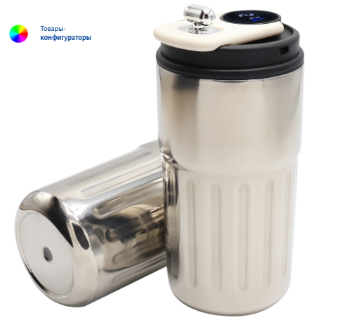 Термокружка — конфигуратор , серебристый с сенсорным датчиком температуры ( 400 мл, Внутри — нержавеющая сталь, снаружи — нержавеющая сталь) можно нанести ваш логотип