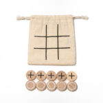 Деревянная игра «Крестики-нолики». В комплект входят 10 деталей, упакованных в мешочек из натурального хлопка.