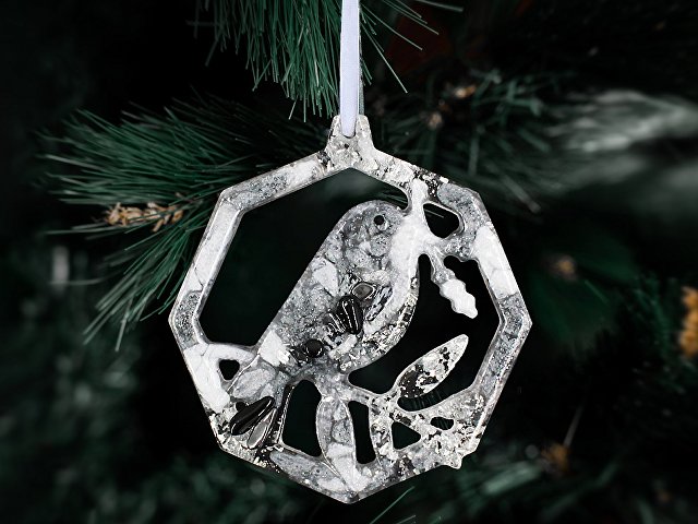 Изделие бережно упаковано в стильную коробку из плотного премиального картона с индивидуальным ложементом, который надёжно фиксирует игрушку. Такой презент не требует дополнительной упаковки и готов порадовать своего обладателя. Для вашего удобства к игрушке прилагается ленточка, с помощью которой вы легко сможете подвесить её на ёлку.