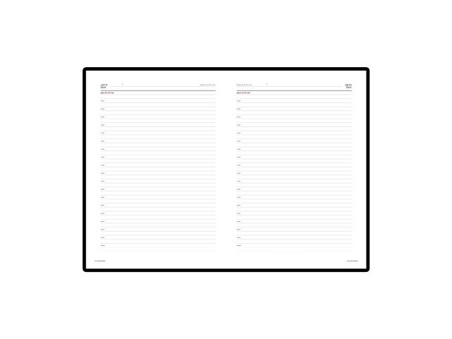 В ежедневнике «Sidney Nebraska» есть полезная справочная информация и телефонная книга на 18 листов, а также 272 страницы для записи идей, мыслей и составления рабочих планов. Специально для ежедневных офисных дел в ежедневнике используется качественная белая бумага плотностью 70 г/м². Разметка блока с указанием времени позволяет планировать дела с точностью до 1 часа.