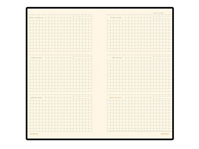Удобный практичный недатированный еженедельник в мягкой обложке из прочного переплетного материала. Контрастная прострочка белыми нитками по периметру привлекает внимание к изящной форме обложки с закругленными уголками. Обложка украшена металлическим шильдиком. Линовка блока — клетка, с указанием дней недели. Карманный формат этого еженедельника позволяет эффективно вести записи на выездных совещаниях, переговорах и встречах. Готов к персонализации.