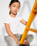 Приталенная футболка с короткими рукавами и боковыми швами. Двойная круглая горловина в рубчик 1 x 1. Усиленные закрытые швы горловины и на плечах.