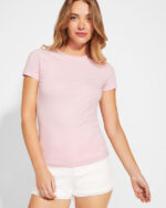 Приталенная футболка с короткими рукавами и боковыми швами. Двойная круглая горловина в рубчик 1 x 1. Усиленные закрытые швы горловины и на плечах. *Съемная этикетка.