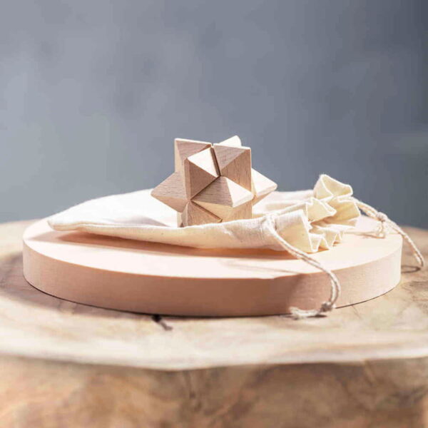 Головоломка из 6 предметов. Прочный хлопковый мешочек со шнурком.
