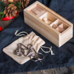 Компактная головоломка из 4 петель. Петли выполнены из нержавеющей стали. Удобно брать в дорогу, отличное развлечение для детей и взрослых. Упакована в холщовый мешочек на кулиске. размер 8 x 11,5 x 1 см