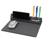 Коврик для мышки с зоной беспроводной зарядки (мощностью 15W) для телефона, дополнительно — складная зона в виде подставки для телефона. Размер коврика составляет 28*22*0,84см.