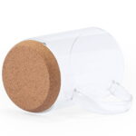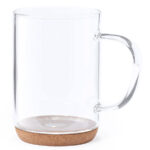 Кружка изготовлена из боросиликатного стекла, а донышко — из пробкового дерева. Боросиликатное стекло отличается особой прочностью и жаростойкостью. Впервые боросиликатное стекло появилось в 19м веке и было использовано для сигнальных фонарей. Фонари из обычного стекла быстро лопались из-за перепада температуры, в то время как эти фонари горели и в зимнюю стужу. После этого жена химика, создавшего прочное стекло, попросила попробовать его в духовке для выпечки пирога. Форма из такого стекла выдержала выпекание без нареканий. Вскоре боросиликатное стекло получило всеобщую популярность и стало широко применяться в фармацевтике, детской продукции и, конечно, при изготовлении различной посуды. Индивидуальная упаковка — коробка из крафтового картона