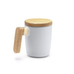 Матовая керамическая кружка с бамбуковой крышкой и ручкой – стильный и функциональный выбор для наслаждения любимыми напитками. 350 мл