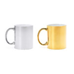 Керамическая кружка объемом 350 мл с глянцевой отделкой. Специально для лазерной гравировки, элегантный дизайн. Доступна в серебряном и золотом цветах. ***Не использовать в микроволновках***