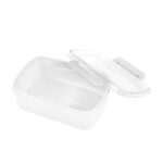 Ланч-бокс с прозрачной крышкой. Не герметичный. Подходит для использования в микровоолновой печи (со снятой крышкой), в посудомоечной машине, в морозильной камере. Корпус выполнен из PP-пластика. BPA-free (не содержит бисфенол А).