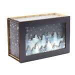 Лес в снегу (прямоугольная, темная) — упаковка новогодняя из дерева