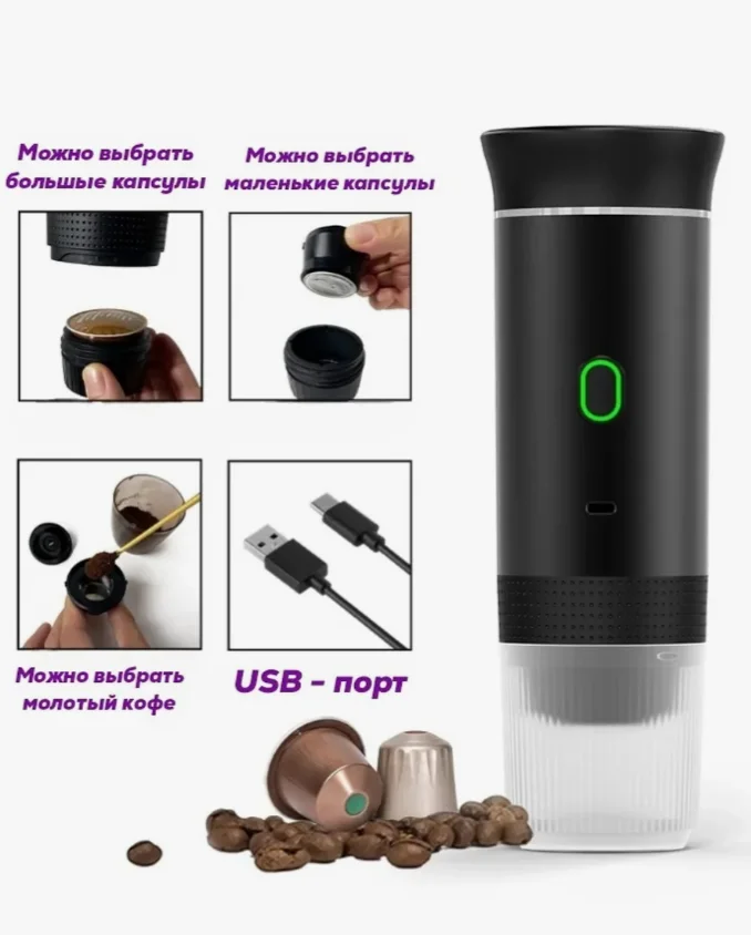 Портативная кофемашина ( подходит для молотого кофе и капусл)