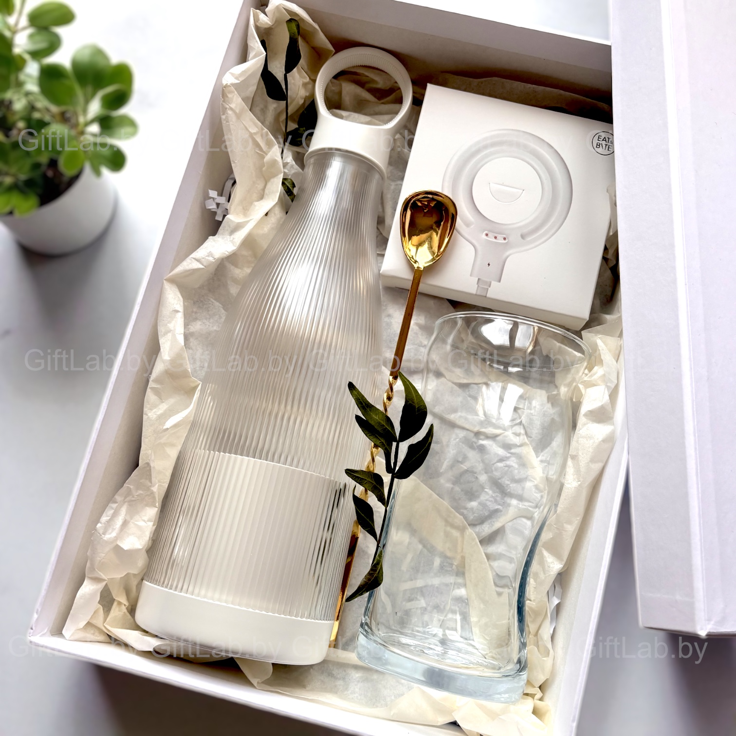 -Портативный блендер ( идеальное решение для приготовления смузи, протеиновых коктейлей и других напитков в любом удобном месте! Работает без подключения к сети, заряжается от беспроводной зарядной станции, что позволяет взять его с собой в авто, путешествие, на работу или на пикник) ( можно забрендировать)