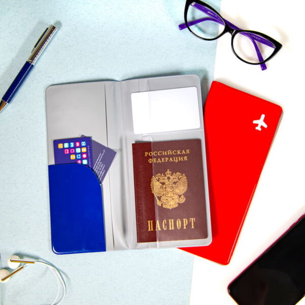 Яркая обложка для тревел-документов из PVC, отличный бюджетный подарок для путешественника. Внутри мультикарман для документов, паспорт и посадочный талон будут всегда под рукой и надежно защищены непромокаемым материалом обложки.