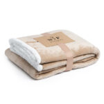 Плед в стиле шерпа из флиса плотностью 380 гсм. Карточка для печати и соответствующая цветная лента прилагаются.