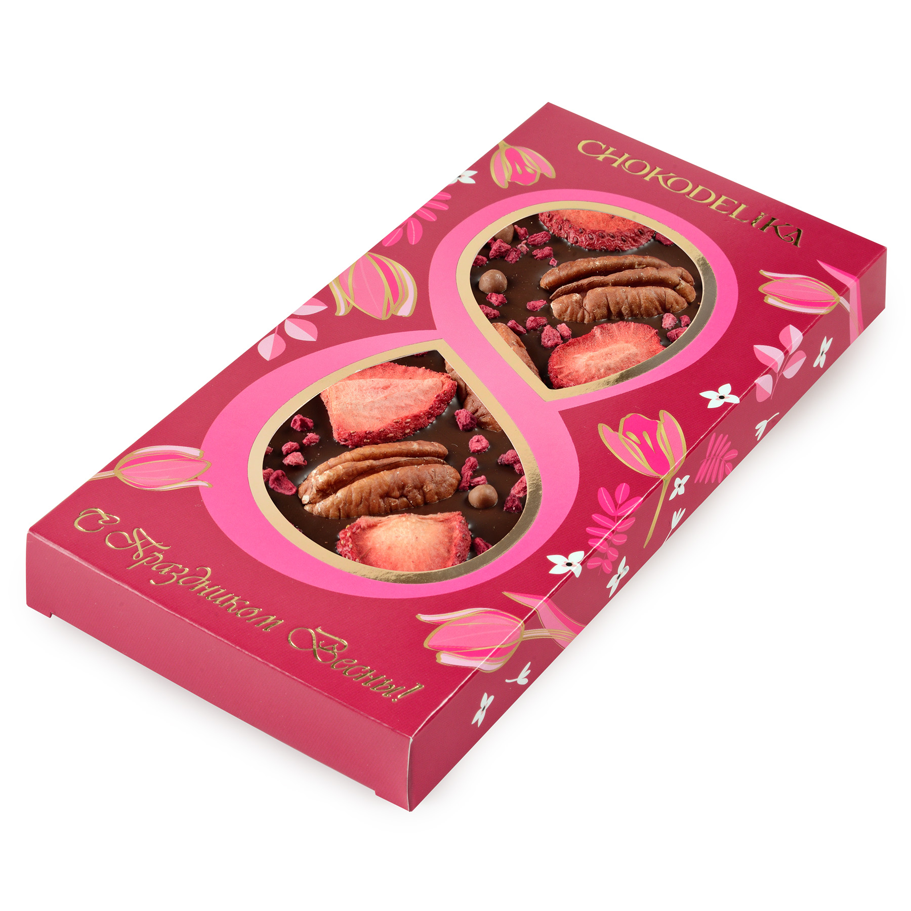 -Шоколад темный с украшением КЛУБНИКА, пекан, малина