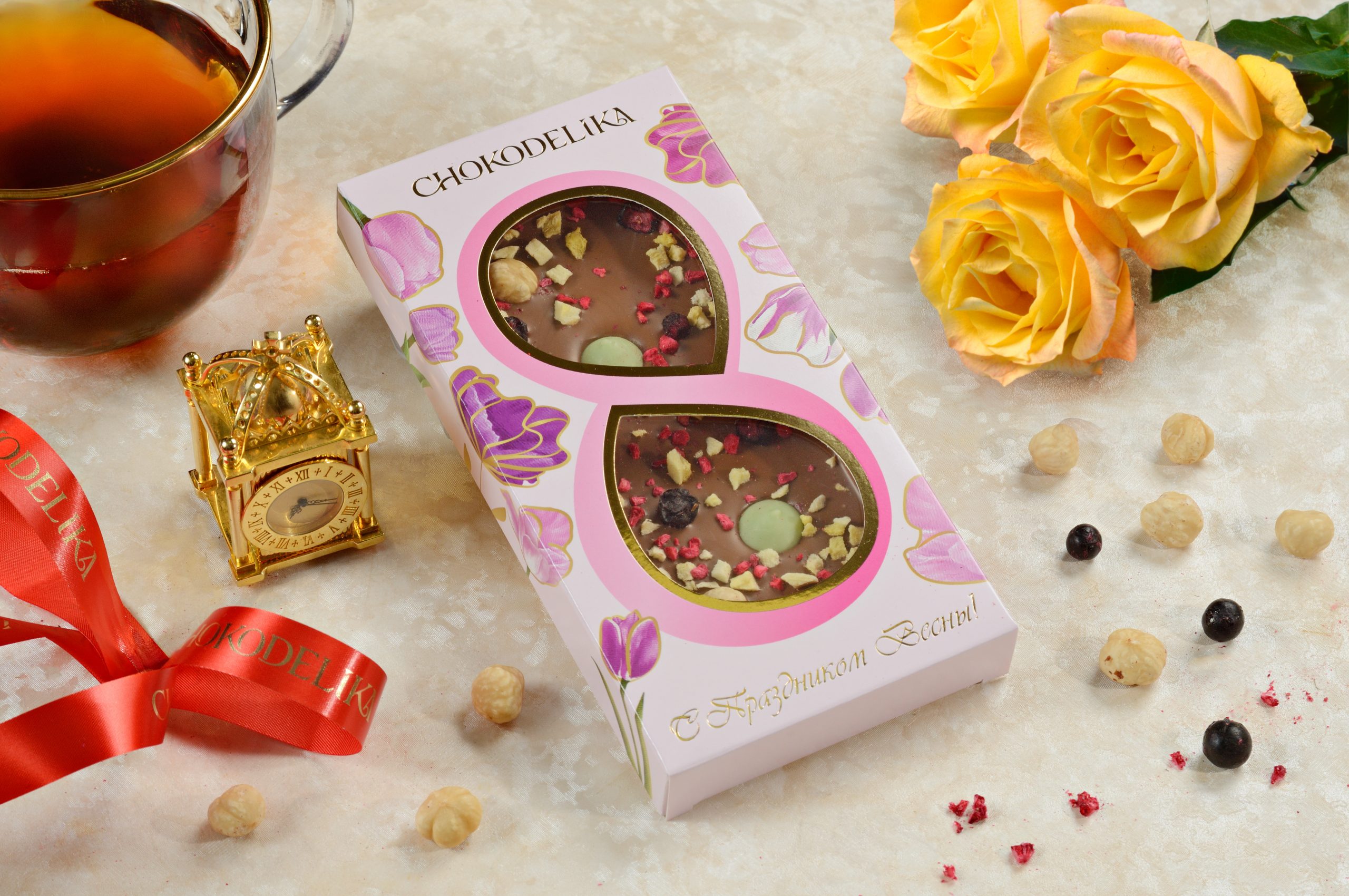 -Шоколад молочный с украшением «Пекан, вишня, фундук»