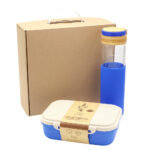 Бутылка стеклянная с силиконовой манжетой и бамбуковой крышкой Glass , синий — 1 шт. (Артикул: 14032.03)