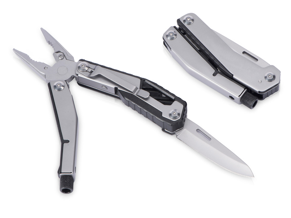 -Мультитул-пассатижи Scopus 4-в-1 с двумя отвертками (Складной нож Scopus от roq выполнен в ассиметричном необычном дизайне, в его составе — среднего размера нож, пассатижи, плоская и крестовая отвертки (биты), шестигранный ключ 5 мм) ( возможно ваше брендирование)