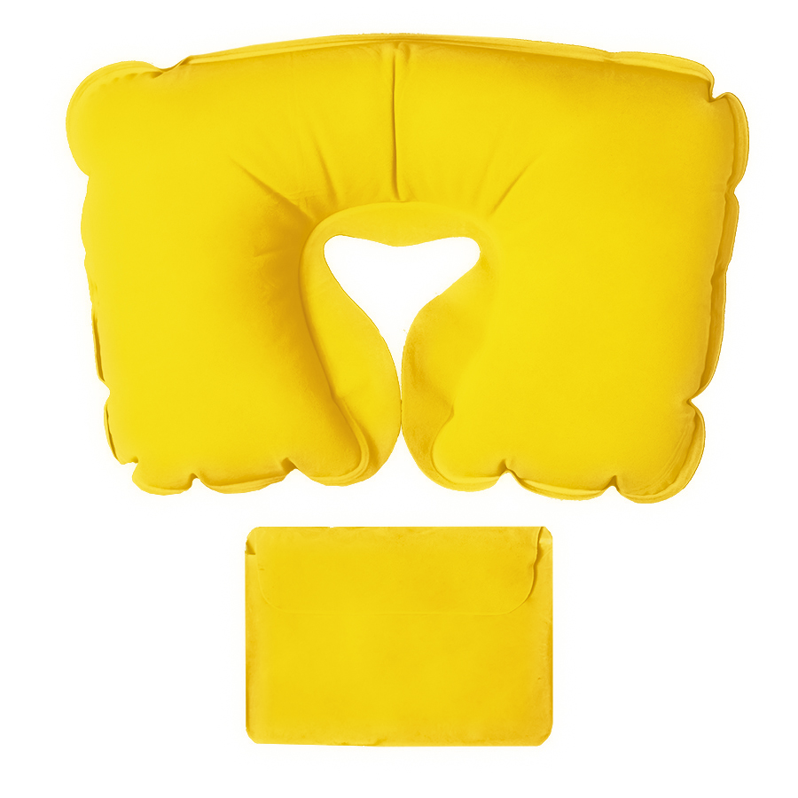 Подушка надувная дорожная WAY в футляре; желтый; 43,5х27,5 см; твил
