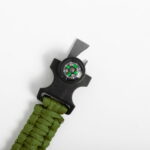 Многофункциональный походный браслет. Выполнен из прочного нейлона (паракорда). Включает в себя 4 функции: компас, свисток, кремневый скребок (при ударе его о металл выскакивают искры) и открывашка. Отдельно стоит отметить удобную застежку.
