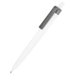 Отличная недорогая ручка в пластиковом корпусе с матовым клипом. Толщина письма — 0,7мм, синие чернила, нажимной надёжный механизм.