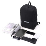 Одно большое отделение закрывается молнией со скрытым звеном. Внутри большой уплотненный карман для ноутбука 15 дюймов с клапаном-резинкой на велькро и карман-органайзер для мелких аксессуаров. На передней стенке большой карман с клапаном на велькро. Сбоку открытый карман и USB-разъем с проводом для подключения внешнего аккумулятора. Уплотнённая короткая ручка для дополнительного комфорта рук. Уплотнённые плечевые ремни регулируются по длине.