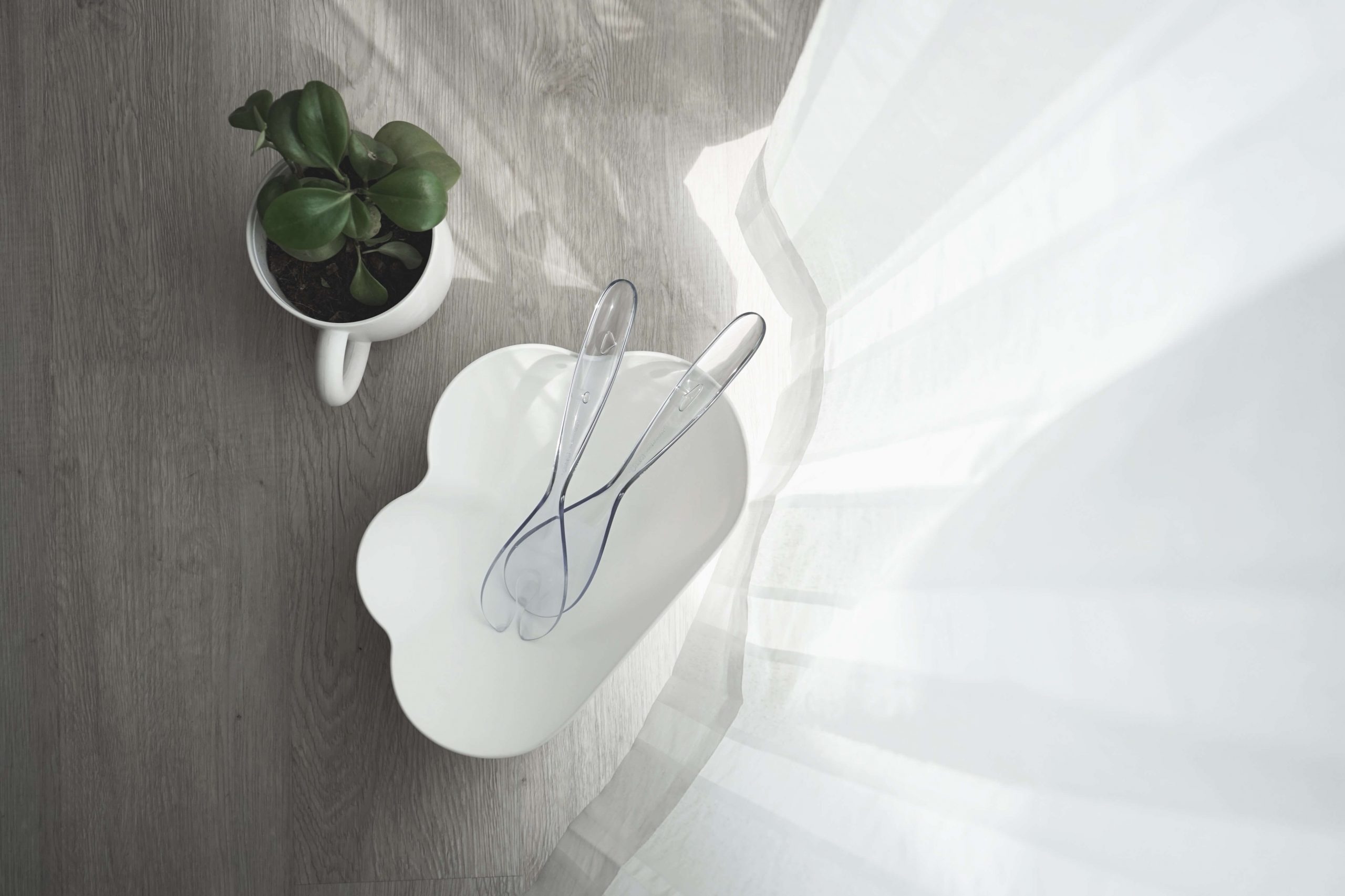 САЛАТНИЦА С ЛОЖКАМИ SPARROW, белая/зеленая