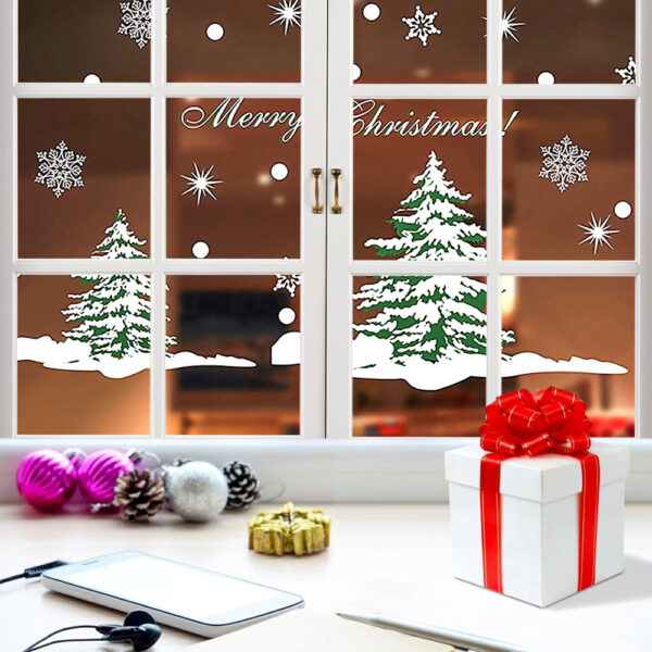 Идеальным дополнением вашего интерьера станут наклейки на окна в виде обязательного символа Нового года – зелёной пушистой ёлки.